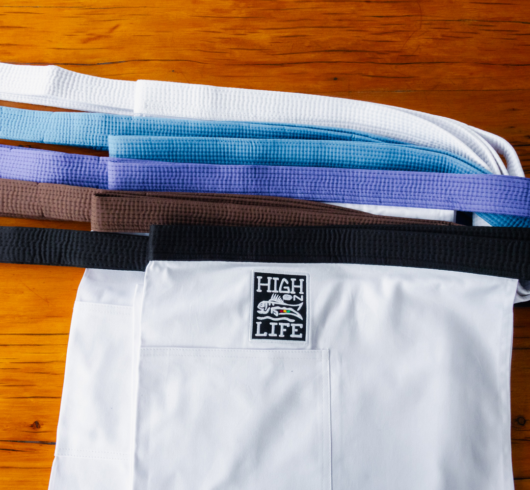 Roll from the mats to the kitchen in style with our exclusive Jiu Jitsu Chef Aprons! Show your rank and passion with 5 vibrant belt color options – whether you’re a white belt beginner or a seasoned black belt master of the culinary arts. Crafted for durability and comfort, these aprons are perfect for protecting your gi (or clothes!) while you grapple with ingredients. Get ready to cook up some victory!